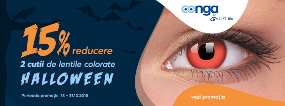Pana pe 31 octombrie 2016, la achizitionarea a 2 cutii de lentile de contact cosmetice pentru Halloween de pe Conga.ro beneficiezi de 15% reducere.