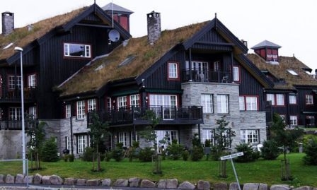 Acoperisul verde poate fi un fenomen mai nou in multe locuri, dar norvegienii il folosesc de sute de ani. Unii au flori amestecate cu iarba, altii isi planteaza chiar si copaci mici.