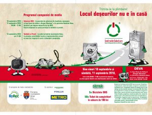 Activitatea de colectare DEEE se va derula în cele două zile şi prin preluarea de la domiciliu, în cazul echipamentelor voluminoase. Pentru detalii despre campanie sau programarea transportului de la domiciliu, cetăţenii sunt invitaţi să sune la numarul 0732 627 179, începând de luni 6 septembrie, pana sâmbătă 11 septembrie, zilnic între orele 9.00-15.00.