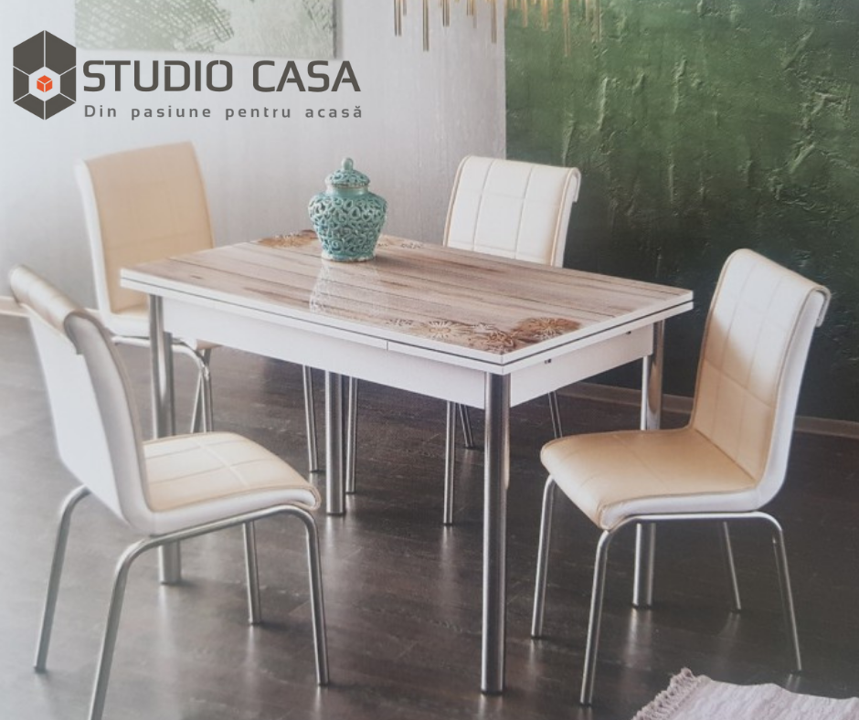 Cu toate acestea, atunci când avem invitați, niciodată nu îi poftim să se bucure de preparatele realizate special pentru ei în bucătărie, ci în sufragerie. De aceea avem nevoie de un set cu masa și scaune care să creioneze zona de dining pentru momente speciale.