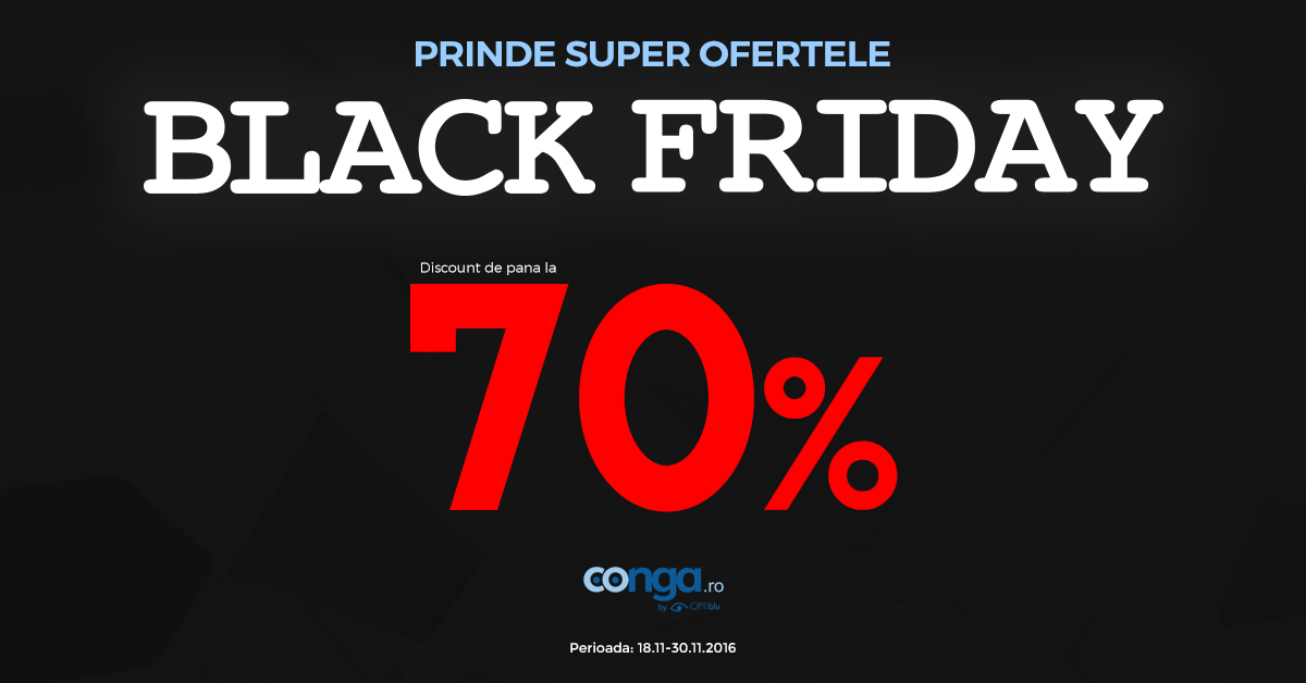 In perioada 18 -30 noiembrie 2016, magazinul online de optica medicala nr.1 din Romania, Conga.ro, organizeaza cel mai asteptat eveniment al anului - Black Friday.