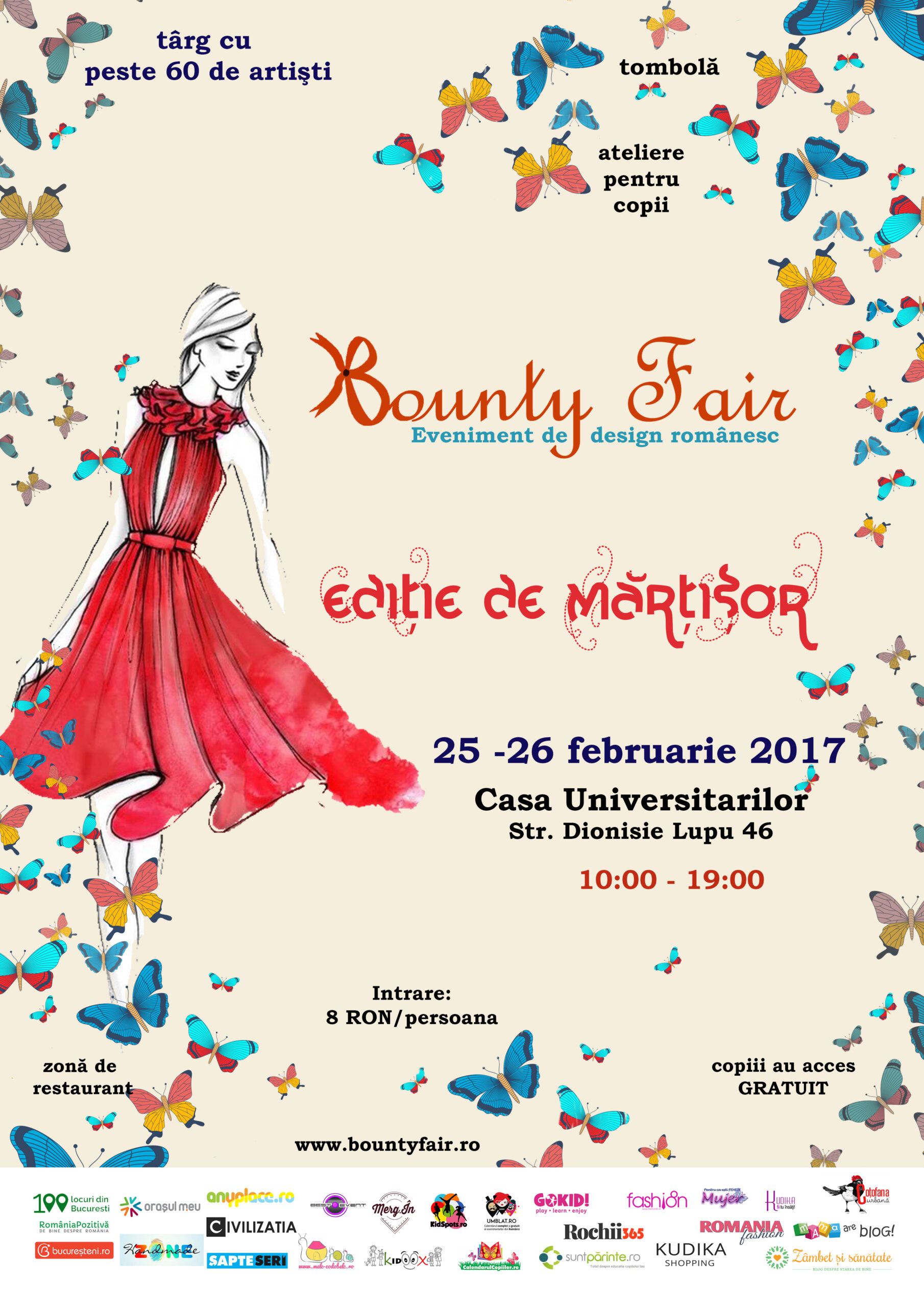 Bounty Fair, ediţia de Mărţişor, va avea loc în weekendul 25-26 februarie 2017, la Casa Universitarilor Bucureşti.