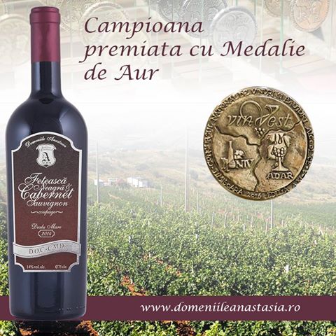 La Vinvest 2016, vinul Feteasca neagra-Cabernet Sauvignon, Coupage, produs de catre Marin N. Constantin, sub brand-ul Domeniile Anastasia, s-a aflat printre cele mai bune vinuri romanesti, obtinand medalie de aur.