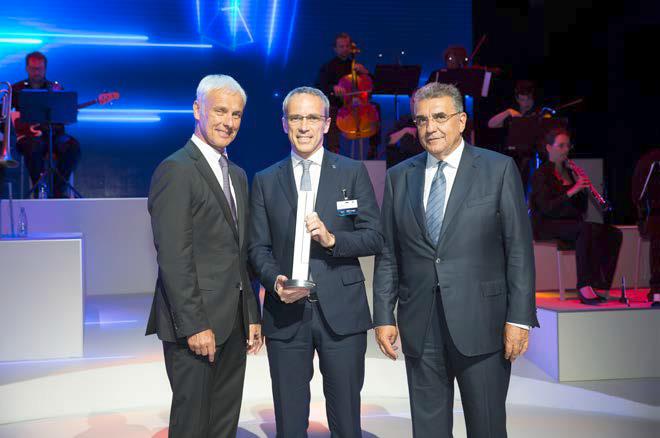 Premiul Volkswagen Group Award, inmanat de Matthias Müller, Director Executiv al Volkswagen Aktiengesellschaft si Dr. Francisco Javier Garcia Sanz, membru al Consiliului de Administratie al Grupului, responsabil de achizitii, a fost primit de Paolo Ferrari, CEO si presedinte al Bridgestone EMEA.
