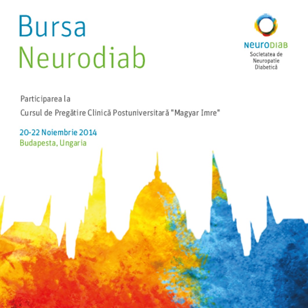 Zece medici rezidenți în specilitatea Diabet, Nutriție și Boli metabolice din România au câștigat Bursele Neurodiab oferite de Societatea de Neuropatie Diabetică – Neurodiab și vor participa astfel la Cursul de Pregătire Clinică Postuniversitară „Magyar Imre“, organizat de Asociația Europeană pentru Studiul Diabetului (EASD), în Budapesta, Ungaria, în perioada 20-22 noiembrie 2014. Bursa Neurodiab constă în susținerea integrală a participării tinerilor medici la eveniment.
