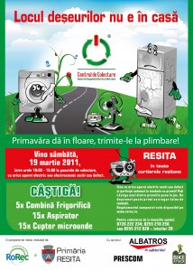 Toti cei care vor depune DEEE in cadrul acestei actiuni vor putea participa la o tombola cu premii Albatros: 5 combine frigorifice clasa A+, 15 aspiratoare si 15 cuptoare cu microunde. Tombola cu premii va avea loc in sala de sedinte a Primariei Resita, luni 21 martie, la ora 11.00