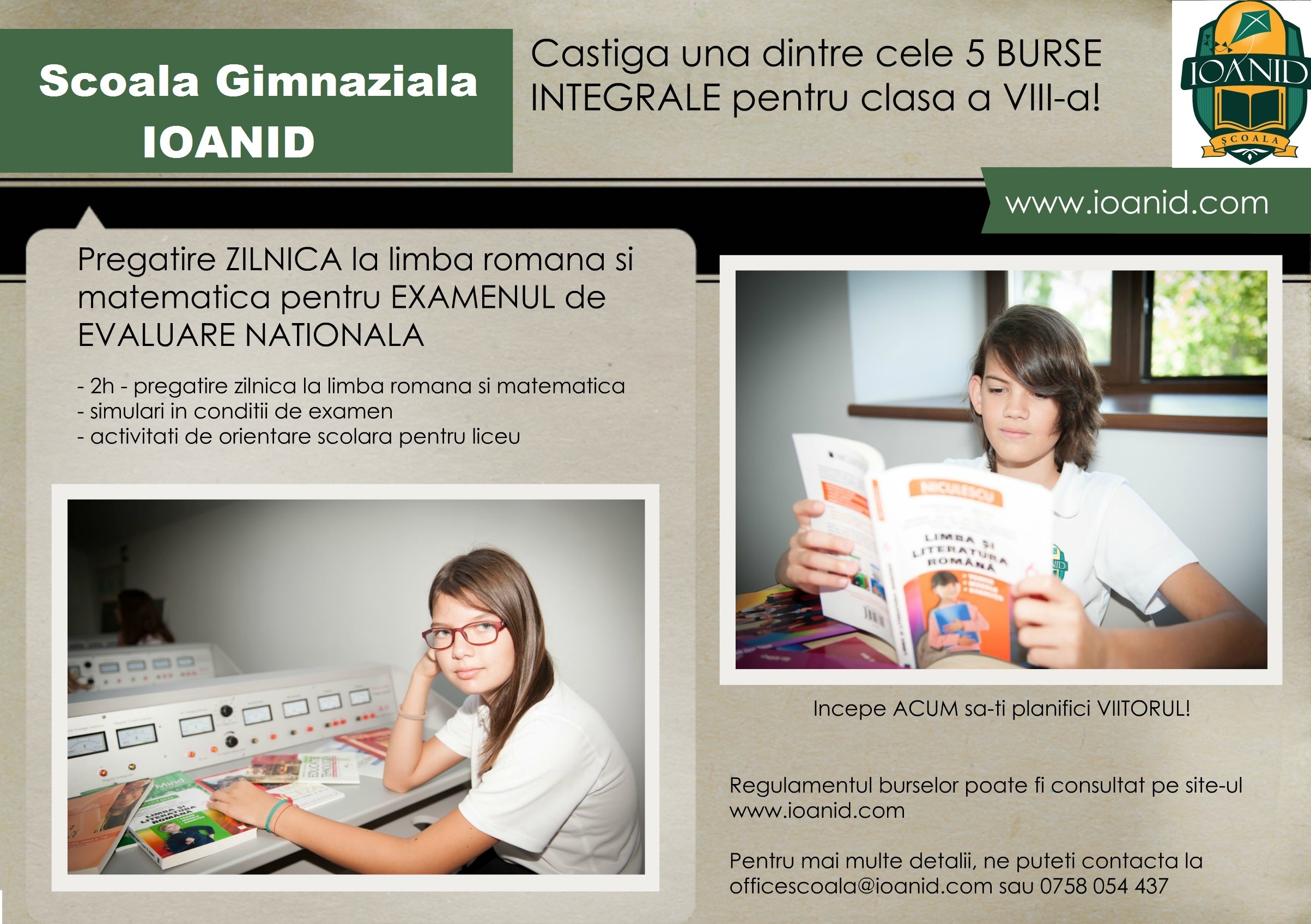 Castiga una dintre cele 5 BURSE INTEGRALE pentru clasa a VIII a oferite de Scoala IOANID