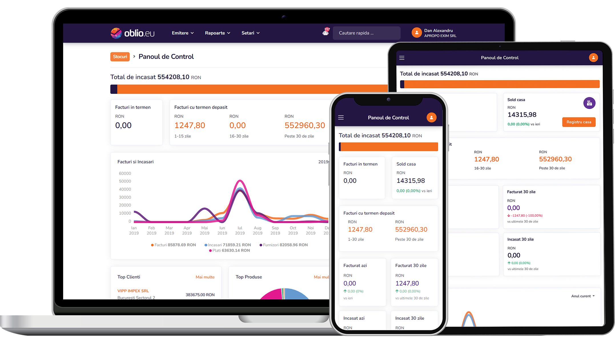 Oblio ofera o integrare gratuita pe viata cu sistemul e-factura, eliminand grija costurilor aditionale si complexitatii tehnice. scopul acestei integrari este de a asigura o tranzitie cat mai lina pentru companii, facilitand in acelasi timp atat emiterea cat si primirea e-facturilor. Printre avantajele oferite de Oblio se numara si urmatoarele:
