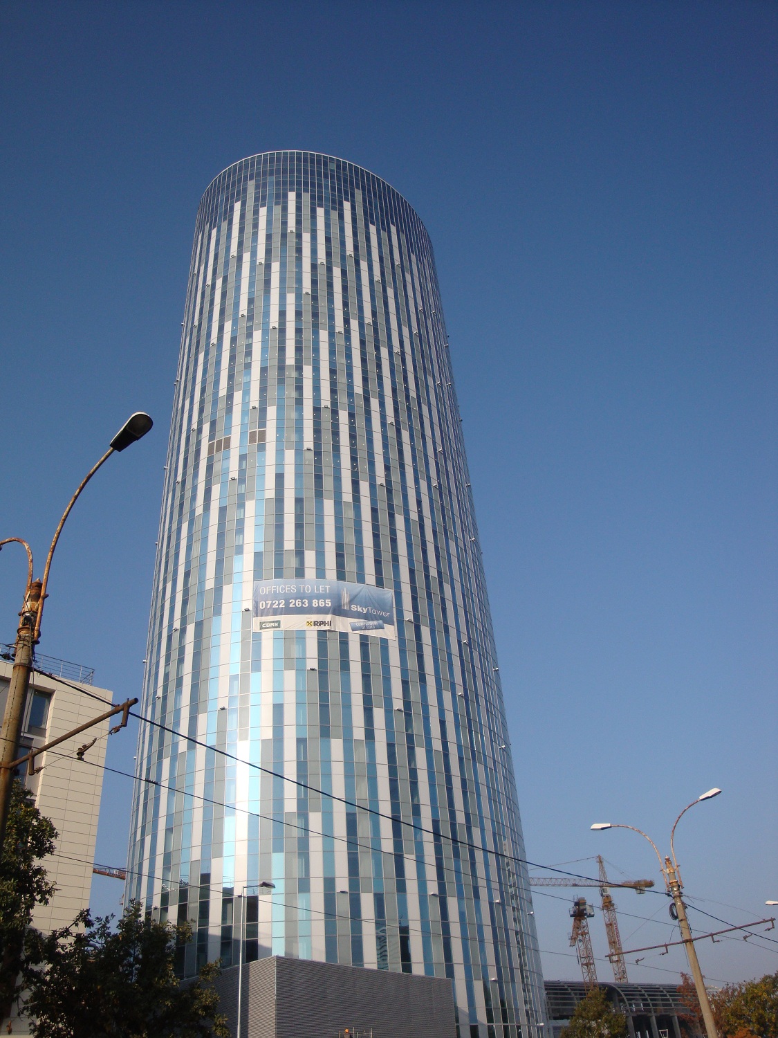 Una dintre cladirile reper ale Bucurestiului modern este Sky Tower. Cu cele 37 de nivele, aceasta domina panorama orasului, indiferent dinspre ce directie. Pentru anvelopa acestei cladiri cu forma eliptica si inaltime de 137m, Alukonigstahl a propus o solutie speciala de fatada “din elemente”. Particularitatea acestui tip de constructie este realizarea in atelier a panourilor, inclusiv vitrarea lor, urmand ca pe santier sa se faca doar asamblarea acestora.