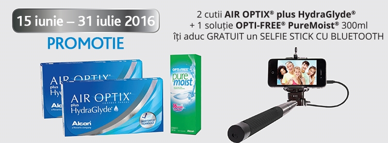 2. La achizitionarea a 2 cutii de lentile de contact AirOptix plus HydraGlyde si a unei solutii Opti-Free Pure Moist 300 ml, primesti Gratuit un Selfie Stick cu BlueTooth.