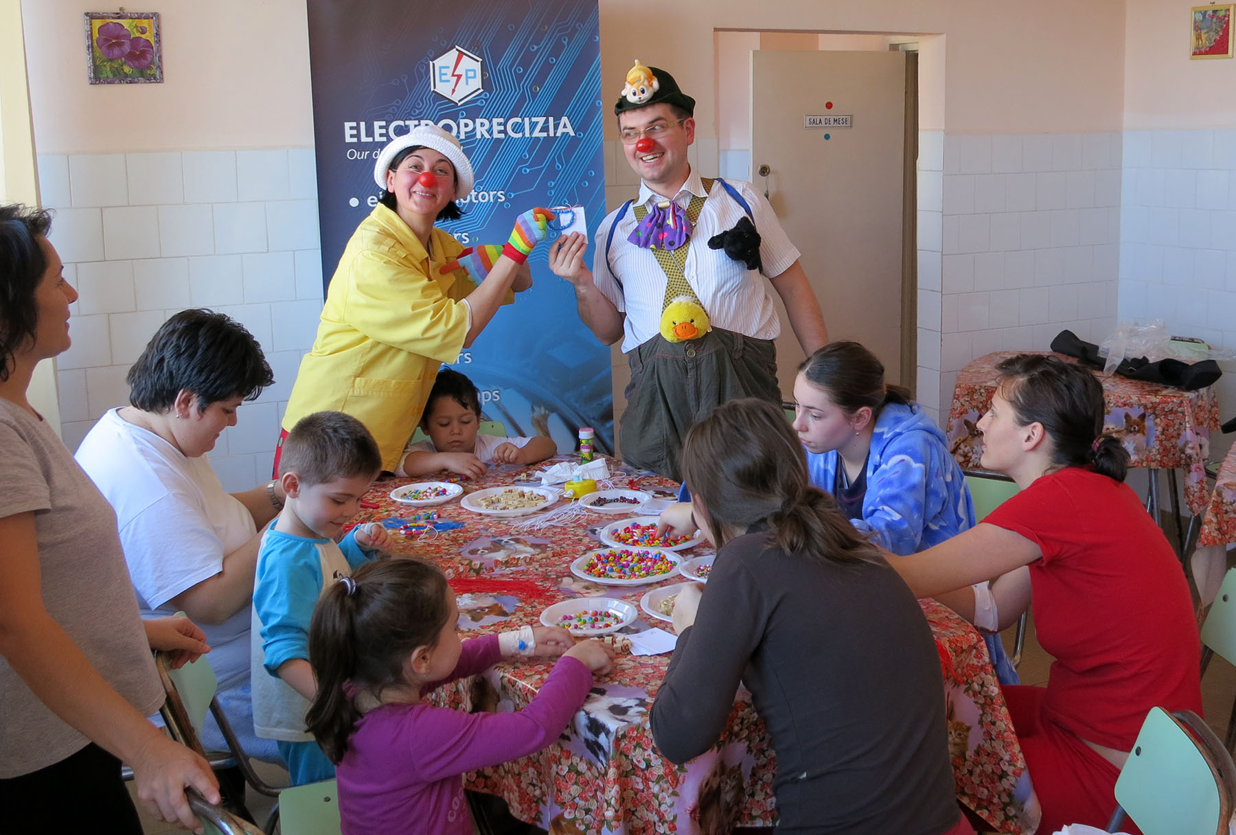 Cu sprijinul companiei Electroprecizia SA, in calitate de partener, Fundatia CliniClowns a organizat un Atelier de Creatie pentru copii, in cadrul caruia indemanarea, creativitatea si emotia au luat forma unor mici bijuterii. Aceastea au fost facute de catre copii pentru mamele lor cu ocazia zilei de 8 martie. “Pentru cateva ore acesti copii au uitat motivul pentru care se afla in spital. Au pregatit cu drag bratari pentru mame, au ras si au fost recompensati pentru efortul lor. Astfel de momente le ridica moralul si ii ajuta sa priveasca optimist spre insanatosire” a declarat Daria Ganescu, Director Artistic al Fundatiei CliniClowns Romania.