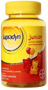 Intre 4 si 12 ani, pe parcursul diferitelor perioade de crestere, copiii au nevoie de un aport adecvat de substante nutritive. In anumite conditii, precum aportul insuficient, apetitul scazut, perioada de covalescenta, efortul fizic si psihic intens, necesarul de micronutrienti este mult crescut. Un ursulet de Supradyn junior pe zi insa ii ofera juniorului tau toti micronutrientii esentiali, importanti in crestere, dezvoltarea fizica si psihica sanatoasa.