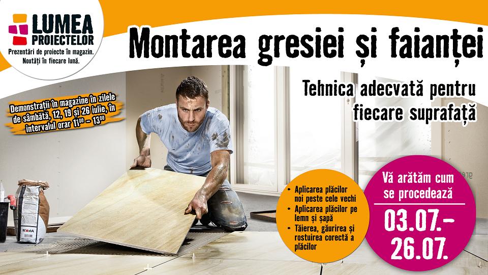 Acesta a subliniat, de asemenea, că este însă important de ştiut că o lucrare durabilă este posibilă doar prin alegerea de produse de calitate şi prin realizarea unui montaj corespunzător. Astfel, pe lângă plăcile de gresie şi faianţă, pentru realizarea unui astfel de proiect clienţii au nevoie şi de un adeziv special, o masă de nivelare, chit de rosturi, grund şi o masă de etanşare, mai ales dacă montajul se face în zonele cu acţiune sporită a apei, precum baia.