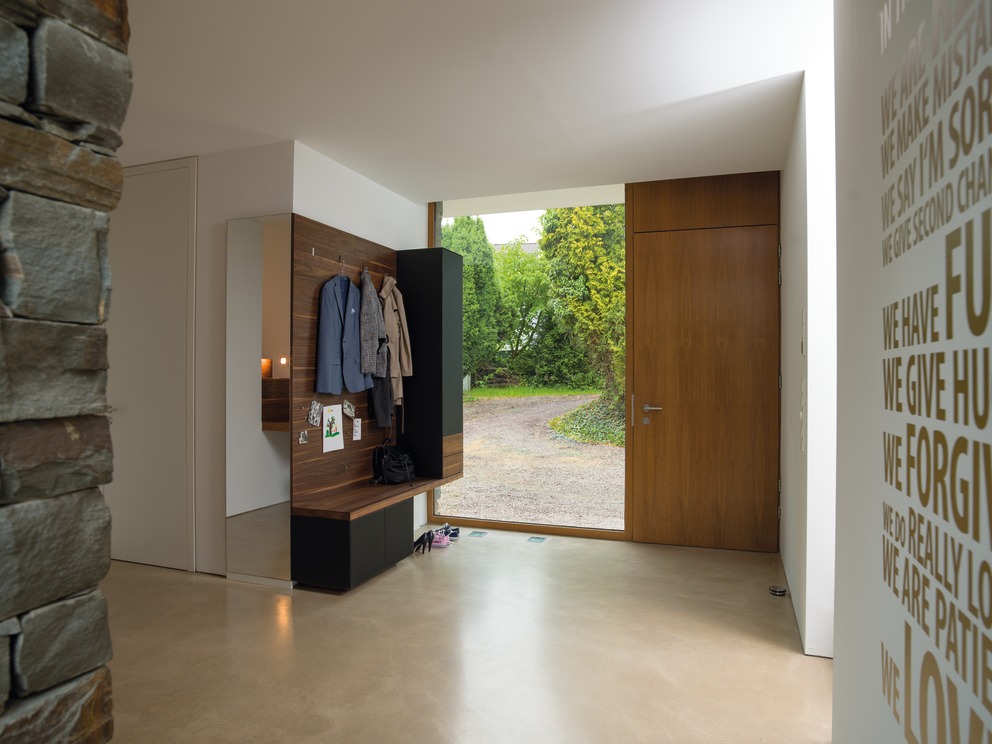 Poti alege sa amplasezi de-a lungul holului un dressing pana in tavan, ca sa-ti ofere spatiu pentru depozitare.
