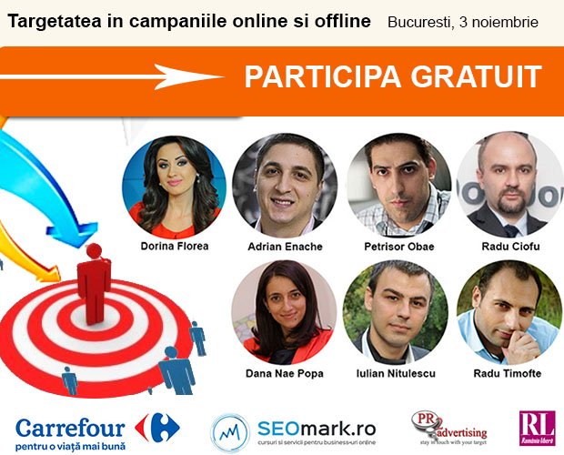 Petrisor Obae (Paginademedia.ro), Radu Ciofu (Admiral Markets), Dana Nae Popa (pastel), Adrian Enache (The Masterplan), Radu Timofte (Creative News) si Iulian Nitulescu (Invox.ro) sunt speakerii care iti vor arata cum poti sa obtii maximum de rezultate prin targetare eficienta.