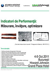 - 6 - 7 Octombrie 2011 – Curs Implementarea si utilizarea unui sistem de management al performantei bazat pe Balanced Scorecard, Howard Johnson Grand Plaza Hotel, Bucuresti