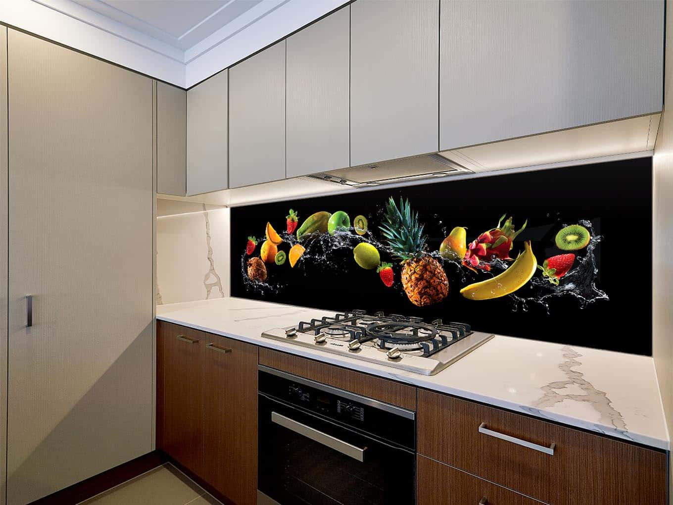 Dacă bucătăria ta nu este foarte mare, sticla este aliatul perfect. Ea reflectă lumina și creează senzația de spațiu deschis. Vei observa cum încăperea devine mai aerisită și mai plăcută vizual. În plus, dacă alegi sticlă lucioasă, vei adăuga un efect de oglindă care face ca bucătăria să pară mai mare decât este în realitate.