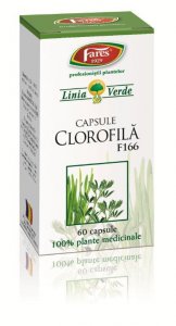 CAPSULELE CLOROFILA contin spirulina, orz verde, lucerna, urzica si alge marine. Sunt recomandate in cure de detoxifiere, eliminarea mirosului corporal neplacut, intoxicatii cronice (medicamente, alcool), steatoza hepatica, hipercolesterolemie, alergii, afectiuni cutanate (urticarie, eczeme), sindromul de oboseala cronica, reducerea efectelor hepatotoxice si nefrotoxice ale medicamentelor, astenie, anemie, convalescenta, cresc rezistenta la efort, reumatism cronic, tulburari circulatorii, obezitate, celulita, arterioscleroza, hipertensiune arteriala, reduc riscul afectiunilor cardiace. Se administreaza 1-2 capsule de 3 ori pe zi, înainte de masa. Durata curei: 1-2 luni. Cura se poate repeta la nevoie. Pret 21 lei.