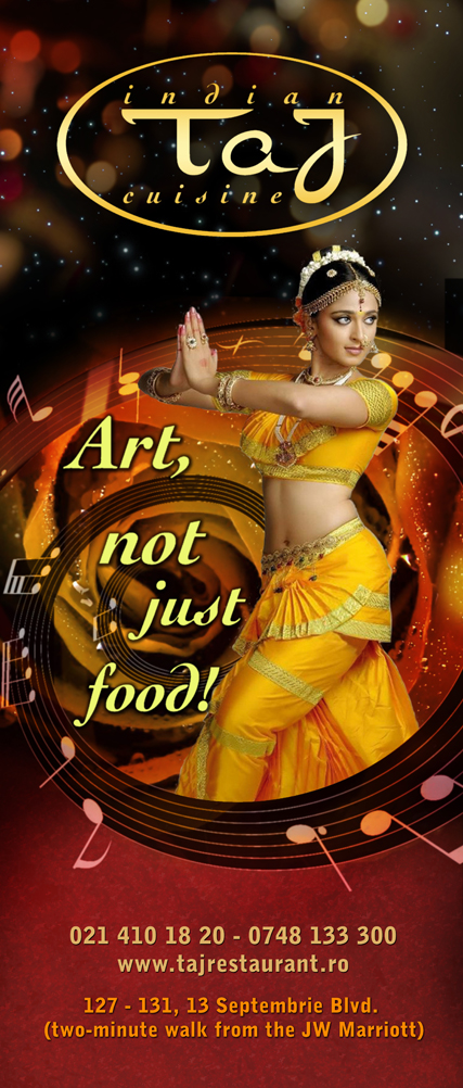 Restaurant Taj reprezinta de 10 ani sofisticata bucatarie indiana in Bucuresti, 10 ani de arome si ritmuri exotice, castigand numai in ultimii ani titlul de de "Cel mai bun restaurant indian din Bucuresti", decernat in cadrul concursului Eating & Drinking Awards. Mai mult, in 2010 restaurantul Taj a castigat si premiul de “Cel mai popular restaurant din Bucuresti”.