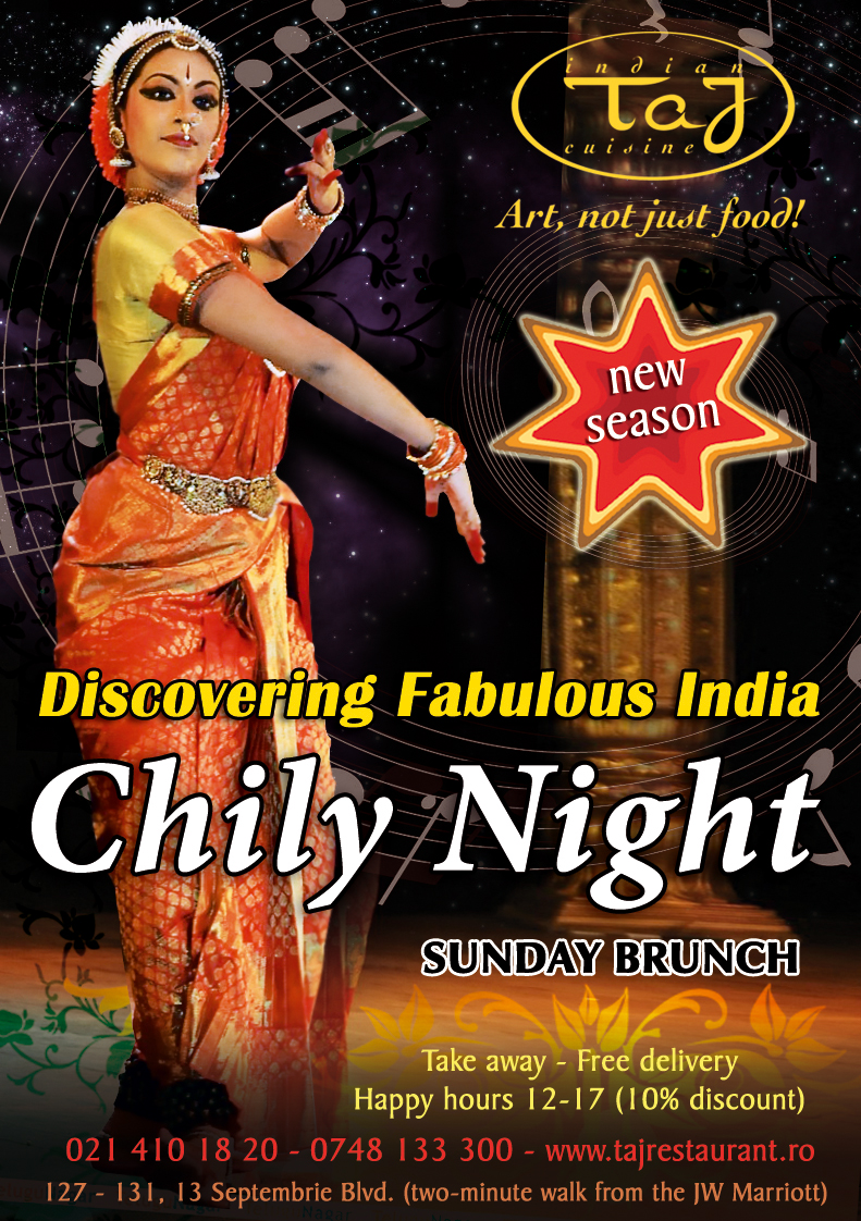 La Taj Restaurant dam viata curiozitatilor dvs. privind acest taram indepartat si putin cunoscut, in cadrul serilor cu tema Discovering Fabulous India, prin subiecte inedite si invitati care va vor impartasi din experientele si povestile lor, dar si prin diversitatea felurilor de mancare indiana si ambientul specific.
