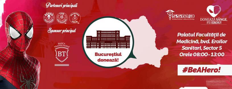 Societatea Studenților în Medicină din București (SSMB), în parteneriat cu Institutul Național de Hematologie Transfuzională București (INHT) desfășoară în perioda 7-11 noiembrie 2016 în Holul de Onoare al Palatului Facultății de Medicină Carol Davila (Bucuresti, bd. Eroilor Sanitari nr.8), o nouă ediție a acestei campanii. În cadrul fiecărei ediții, cu ajutorul a peste 100 de voluntari, reușim să colectăm circa 500 de unități de sânge utilizate ulterior în aproape 150 de intervenții medicale.