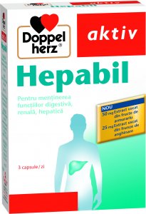 Asocierea celor doua extracte din compozitia Doppelherz® aktiv Hepabil aduce organismului substante bioactive valoroase, sprijinindu-l, pe de o parte, in asimilarea substantelor utile, prin stimularea functiei digestive, iar pe de alta parte, in actiunea detoxifianta, prin sustinerea functiilor hepatica si renala.
