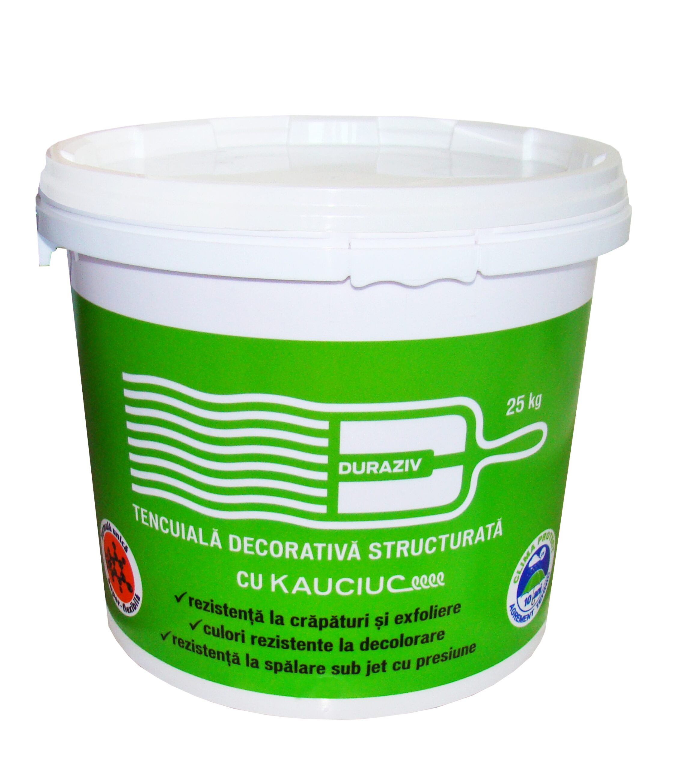 Producatorul de materiale de constructii DURAZIV a dezvoltat o noua tencuiala destinata fatadelor, care include rasini sintetice de calitate superioara si substante care contribuie la o excelenta rezistenta la apa. DURAZIV cu Kauciuc Clima Protect® este o tencuiala flexibila, care previne exfolierea sau crapaturile si rezista la temperaturi si conditii atmosferice extreme. Produsul este nuantabil in sistemul DURAZIV 400.
