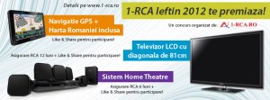 Dupa cum spuneam mai sus noua campanie de promovare a site-ului include si un concurs, acest concurs consta in premierea clientilor care isi fac o asigurare de 6 respectiv 12 luni prin intermediul site-ului sau vizitatorilor care dau Like&Share pe pagina lor de facebook. Premile sunt si ele pe masura, un Televizor LCD cu diagonala ecran de 81cm, un Sistem Home Theatre si Navigatie GPS + Harta Romaniei inclusa, diagonala display 4,3 inch. Pentru detaliile concursului si regulament vizitati pagina: http://www.1-rca.ro/rca-ieftin-2012