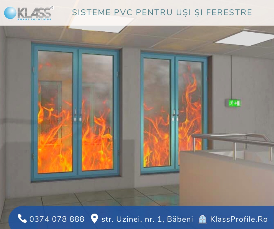 Testele de incendiu au aratat ca PVC-ul este in mod natural ignifug si nu va provoca, sustine sau alimenta dezvoltarea incendiului. Aceasta inseamna ca, atunci cand instalati ferestre cu profile PVC Klass in case sau birouri, puteti fi siguri ca ferestrele dumneavoastranu vor accelera raspandirea flacarilor in cazul unui incendiu. Acest lucru se datoreaza continutului de clor pe care il are PVC-ul si actioneaza ca un ignifug. Ferestrele, precum si usile, tind să fie principalele cai de evacuare in timpul unui incendiu. Prin urmare, cel mai bine este sa alegeti un material pentru ferestre si usi care sa fie durabil si sa nu fie foarte inflamabil, cum ar fi PVC-ul.