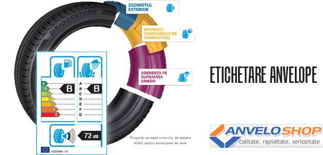 Reglementarea EC/1222/2009 prevede ca toate tipurile de anvelope - de vara, de iarna si all season, destinate utilizarii pentru masini proprietate personala, vehicule comerciale usoare, camioane, autocare si autobuze, si care au fost fabricate dupa 1 iulie 2012 si sunt comercializate in Uniunea Europeana, trebuie in mod obligatoriu, incepand cu 1 noiembrie 2012 sa poarte un sticker sau sa fie insotite de o eticheta vizibila in punctul de vanzare.