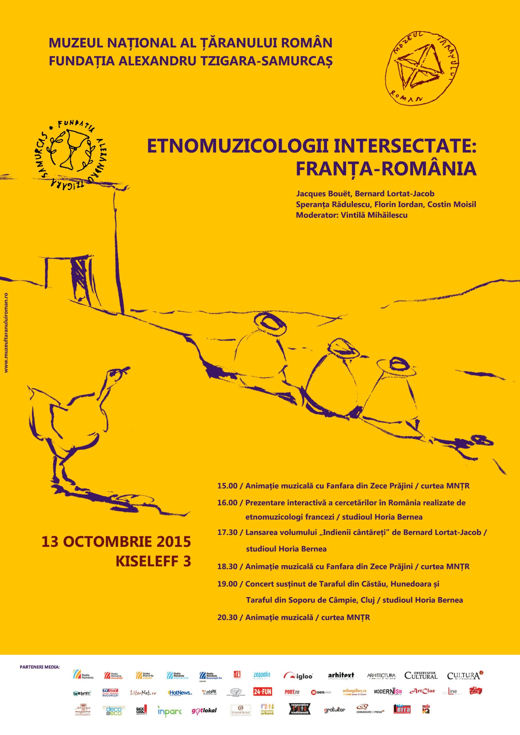 Muzeul Național al Țăranului Român și Fundația Alexandru Tzigara-Samurcaș vă invită marți, 13 octombrie 2015, de la ora 15, la Etnomuzicologii intersectate: Franța – România, discuții, lansare de carte, muzici de fanfară și tarafuri.