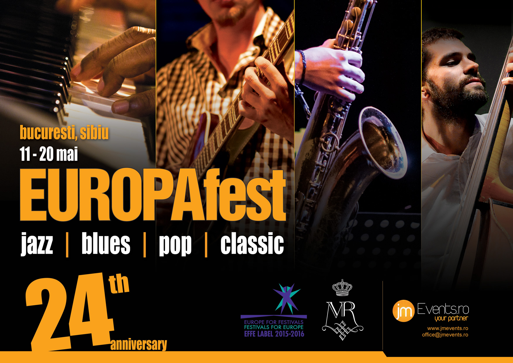 Festivalul EUROPAfest – jazz | blues | pop | clasic prezinta anual peste 40 de concerte de exceptie cu artisti din Europa, dar si invitati speciali din SUA, Australia, China sau Japonia. In 2017 peste 300 muzicieni din 45 de tari vor evolua pe cele mai importante scene din Bucuresti si Sibiu, sali de concert traditionale, dar si spatii neconventionale, oferind publicului bucuria de a se conecta la muzica unei intregi lumi.