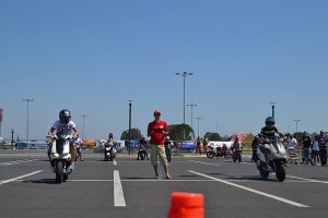 Evenimentul s-a desfasurat la Constanta, in parcarea centrului comercial Maritimo, unde, chiar si pe o vreme caniculara s-au adunat peste 30 de scuteristi pasionati. Cei prezenti au beneficiat de sfaturi primite de la reprezentantii Directiei Rutiere referitoare la un mod de condus civilizat (fara teribilisme si cu respectarea partenerilor de trafic).