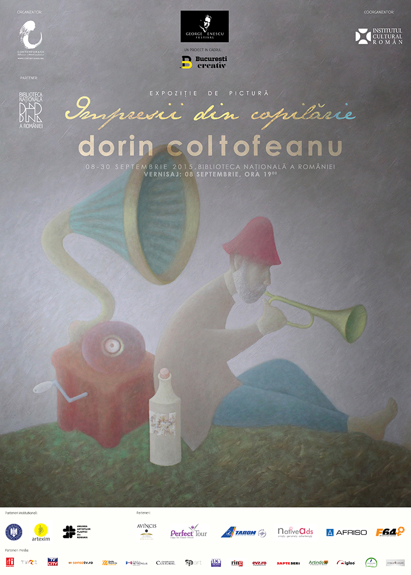 Contemporanii și Institutul Cultural Român vă invită marți, 8 septembrie 2015, orele 19:00, la vernisajul expoziției personale a pictorului Dorin Coltofeanu intitulată Impresii din Copilărie, desfășurat în spațiul expozițional Symposium, Biblioteca Națională a României.