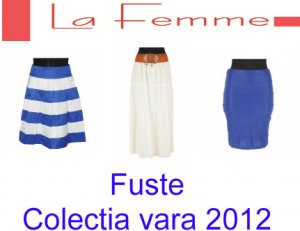 Avalansa de motive florale ne inunda si in vara 2012. La Femme s-a gandit si la femeile active si le-a pus la dispozitie o serie de modele de fuste fluide, cu dantela delicata. Bucura-te de noul sezon si poarta fuste cu texturi florale care urmaresc linia corpului pentru a sublinia un efect dinamic si plin de contrast.