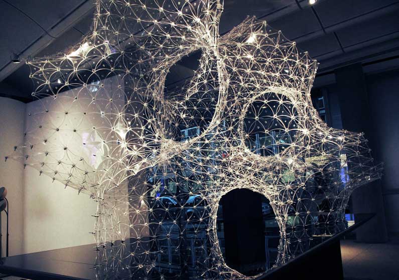 Toate instalațiile sale sunt modulare, fiind realizate dintr-un anumit număr de componente care se repetă. Unele sunt făcute din sute sau chiar mii de piese, care sunt îmbinate urmând un principiu de simetrie multi-dimensională, creând instanțe ale acestor suprafețe continue care, teoretic, pot fi extensibile la infinit.