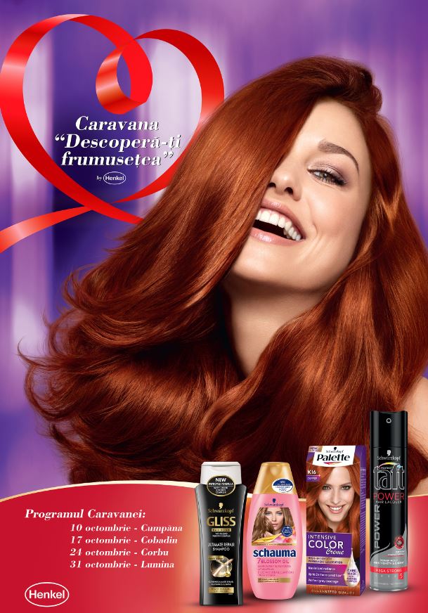 “Caravana Descopera-ti frumusetea” isi propune sa inspire fetele si femeile sa isi puna in valoare atuurile naturale si sa capete incredere in frumusetea lor. Ingrijirea parului – unul dintre cele mai vechi ritualuri de infrumusetare – este si astazi un element central in rutina de infrumusetare a femeilor, precum si un simbol al feminitatii si senzualitatii. Brandul Schwarzkopf din portofoliul Henkel Romania este partenerul de incredere al femeilor in rezolvarea oricaror probleme ce tin de igiena si frumusetea capilara.