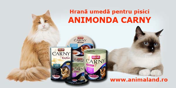 Animonda Carny este disponibil in diverse sortimente: somon, ton, fructe de mare, carne de vita + curcan, carne de pui + iepure, curcan + creveti, curcan + iepure, vita + pui cu branza, etc.