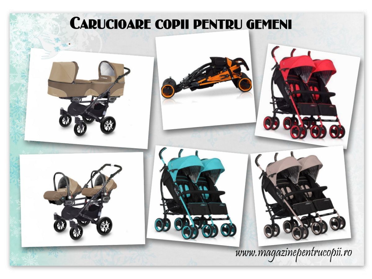 Este foarte important sa iti alegi un model de caruciore copii care sa te ajute foarte mult, iar alegerea este un pic mai dificila pentru ca oferta de carucioare pentru gemeni nu este la fel de bogata ca si cea de carucioare copii. Totusi, gasesti suficiente modele, iar un prim loc de cautare este bineinteles internetul unde poti sa vezi, sa compari si sa te gandesti ce varianta ar fi cea mai potrivita pentru familia ta.