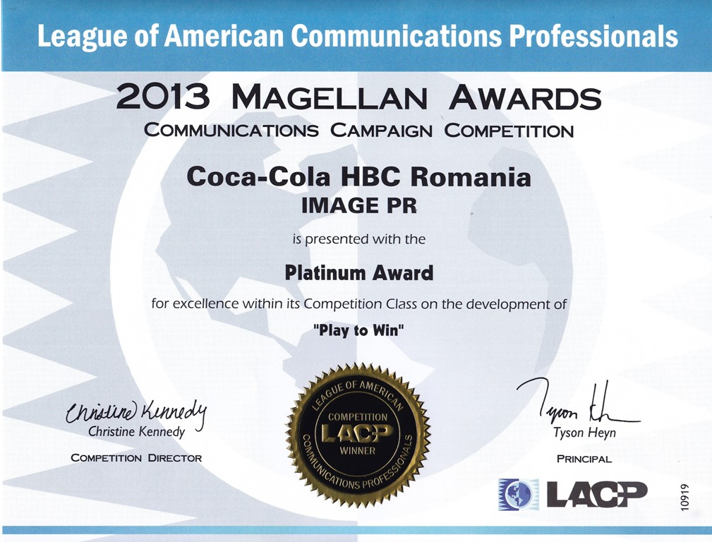 LACP Magellan Awards reuneste competitori din toata lumea si premiaza cele mai eficiente campanii de comunicare. Aplicatiile au fost jurizate de un grup de specialisti in domeniul comunicarii si au fost evaluate in functie de criterii precum: claritatea obiectivelor, definirea corecta a publicurilor-tinta, mesaje-cheie, executia campaniei, eficienta si rezultate.