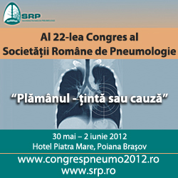 Anul 2012 va gazdui si cel de-al „XXII-lea Congres al Societatii Romane de Pneumologie”, care se va desfasura in perioada 30 mai- 2 iunie la Poiana Brasov. Cu aceasta ocazie, specialistii din domeniu vor aborda teme din sfera urmatorelor afectiuni: tuberculoza pulmonara, bolile obstructive bronho-pulmonare cronice, infectiile pulmonare si altele. Pentru mai multe detalii referitoare la acest eveniment, puteti accesa site-ul Societatii Romane de Pneumologie: http://www.congrespneumo2012.ro/.