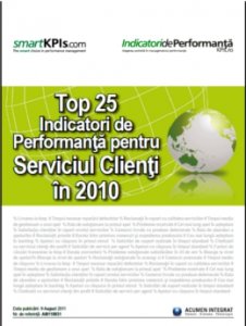 27 Septembrie 2011, Cluj Napoca – www.IndicatoridePerformanta.ro, cea mai mare comunitate de profesionişti din România specializată în măsurarea şi managementul performanţei, în colaborare cu smartKPIs.com, cea mai documentată bază de date cu indicatori de performanţă la nivel internaţional, anunţă lansarea raportului „Top 25 Indicatori de Performanţă pentru Serviciul Clienţi în 2010”. Raportul prezintă în detaliu Indicatori de Performanţă (KPIs) precum: ” % Livrarea la timp”, „# Timpul necesar reparării defectelor”, sau „% Reclamaţii în raport cu calitatea serviciilor”, alături de alte exemple populare în 2010. Utilizarea instrumentelor este esenţială pentru atingerea rezultatelor, iar Indicatorii Cheie de Performanţă (KPIs) sunt astăzi printre cele mai populare instrumente de management.