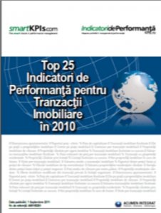 24 Noiembrie 2011, Cluj-Napoca – www.IndicatoridePerformanta.ro, cea mai mare comunitate de profesionisti din Romania specializata in masurarea si managementul performantei, in colaborare cu smartKPIs.com, cea mai documentata baza de date cu indicatori de performanta la nivel international, anunta lansarea raportului „Top 25 Indicatori de Performanta pentru Tranzactii Imobiliare in 2010”. Raportul prezinta in detaliu Indicatori de Performanta (KPIs) precum: ”# Dimensiunea apartamentului”, „# Raportul pret – chirie”, sau „% Rata de capitalizare” alaturi de alte exemple populare in 2010. Utilizarea instrumentelor este esentiala pentru atingerea rezultatelor dorite, iar Indicatorii Cheie de Performanta (KPIs) sunt astazi printre cele mai populare instrumente de management.
