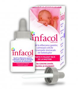 Ingredientul activ din produsul Infacol este simeticona, un antiflatulent care favorizeaza contopirea micilor bule de gaze captive si formarea unor bule mai mari, pe care bebelusul le poate elimina mai usor.