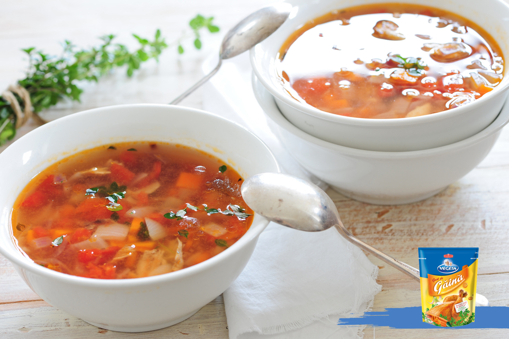 Te-ai gandit sa experimentezi chiar tu diverse variante ale aceluiasi preparat, sa-ti surprinzi familia si sa o porti intr-o calatorie culinara? Poti face ca spiritul traditionalist al diverselor zone sa poposeasca la masa ta, tinand cont de modalitatile de prepararea a mancarii si adaugand acel ingredient care va schimba gustul preparatelor terne cu cel al savuroaselor mancaruri ale bunicii. Vegeta Gust de Gaina va transforma, spre exemplu, supa cu taitei in acel preparat cu care te intalneai cu placere in copilarie. Poti incerca abordari diferite ale acesteia: varianta cu legume ca in Moldova sau pe cea strecurata ca in Ardeal. Vei sti ca cei de la masa vor aprecia si mai mult talentele tale de bucatar pentru diversitate, dar si datorita ingredientului secret care va face ca supa sa nu fie doar un simplu fel de mancare. Vegeta Gust de Gaina se poate folosi cu succes si in alte ciorbe cu carne, cat si in cele cu legume, in tocanite sau ca baza pentru diferite preparate. Cei ce vor gusta se vor intreba mereu ce e nou in gustul pe care il vor experimenta.