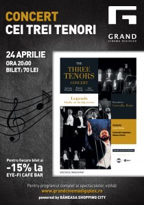 Luna aprilie aduce la Băneasa Shopping City alte două reprezentaţii ale unor spectacole celebre, „Lacul lebedelor” şi „Cei trei tenori”. Pe 24 aprilie, Grand Cinema Digiplex va difuza înregistrarea spectacolului „Cei trei tenori”, prezentând marile legende ale muzicii - Luciano Pavarotti, Plácido Domingo şi José Carreras. Iar capodopera lui Tchaikovsky, „Lacul lebedelor”, va fi transmisă în format HD pe 27 aprilie.