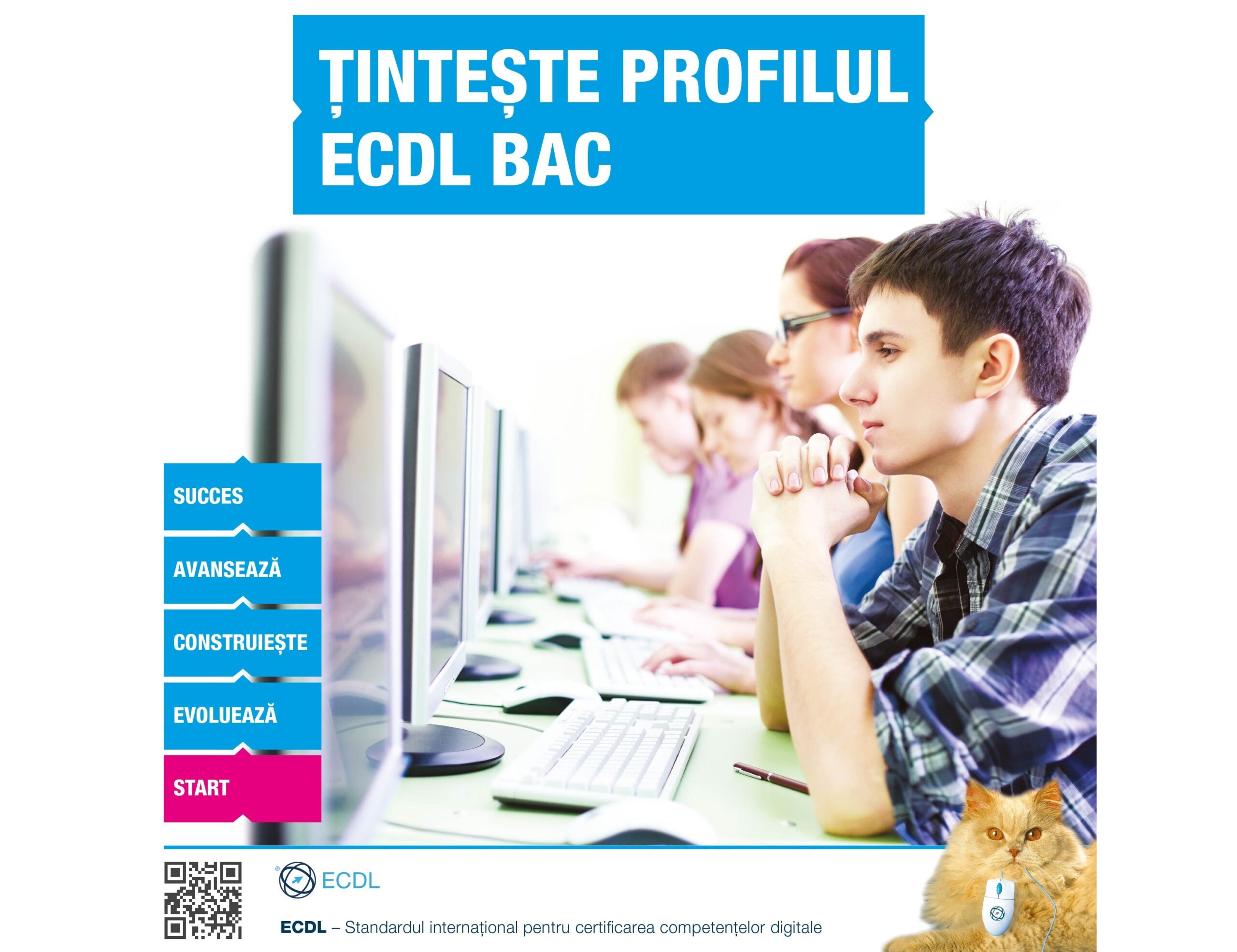 Profilul ECDL pentru BAC se adreseaza elevilor care doresc sa echivaleze proba de Competente digitale din cadrul Bacalaureatului cu Permisul ECDL. Au fost create doua Profiluri ECDL destinate elevilor - Permisul ECDL PROFIL START BAC si Permisul ECDL PROFIL BAC, care pot fi dezvoltate apoi permanent.