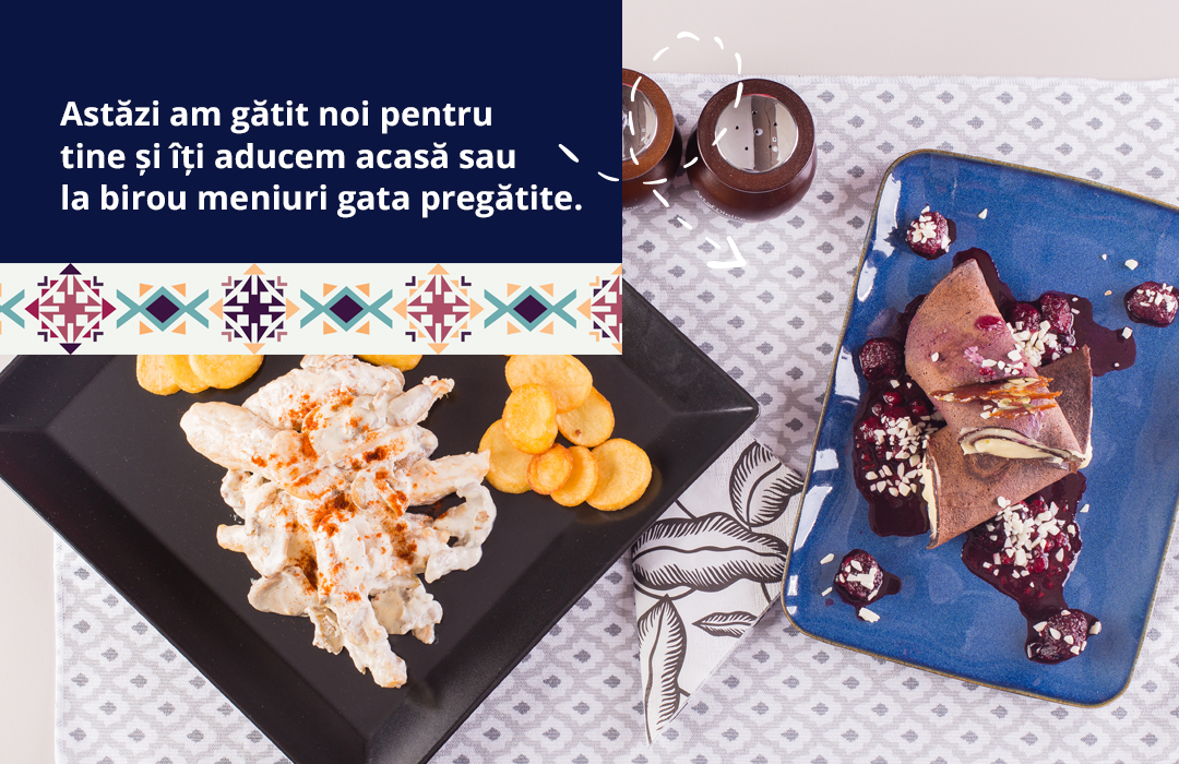 Meniurile noastre sunt special create pentru persoanele care isi doresc sa ia pranzul sau cina acasa, impreuna cu familia, sau cu cei dragi, pentru cei ce vor sa pregateasca o masa romantica pentru partenerul de viata. Cu Casa Romaneasca totul este simplu, intri pe site, vezi variantele noastre de meniuri adaptate tuturor preferintelor, inspirate din bucataria traditionala, dar si din cea internationala, comanzi ce iti face cu ochiul si noi iti livram, tu te ocupi doar de atmosfera!
