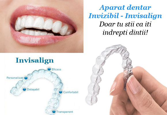Invisalign - aparatul dentar invizibil - este o metoda moderna de indreptare a dintilor. Acum puteti obtine zambetul mult dorit cu ajutorul aparatului dentar modern. Invisalign este o tehnologie de indreptare a dintilor avansata deoarece va permite cu ajutorul graficei 3D computerizata sa vedeti planul de tratament de la inceput pana la pozitia finala dorita! Puteti sa vedeti cum va evolua indreptarea dintilor dumneavoastra inainte de a incepe tratamentul! Invisalign este de fapt un set de alignere pe care dumneavoastra le schimbati o data la 2 saptamani. Durata tratamentului este intre 9 si 18 luni in functie de complexitatea acestuia.