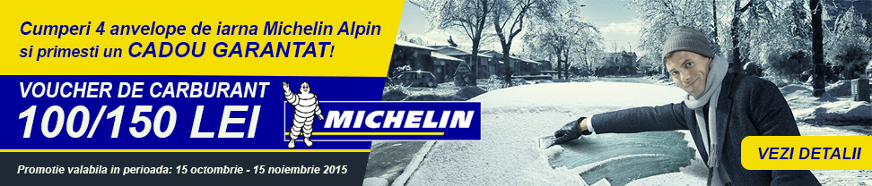 - la 1 Card MOL BLUE in valoare de 100 lei numai la achizitia a 4 anvelope de iarna noi, marca Michelin Alpin cu diametru mai mic de 17”